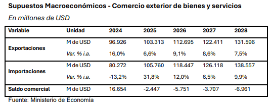 En cuanto a las exportaciones, se espera un incremento del 10,6% en las cantidades de bienes y servicios exportados en 2026. La proyección oficial es que el próximo año se realicen exportaciones por casi 113.000 millones de dólares, unos 10.000 millones más que en el actual ejercicio.
