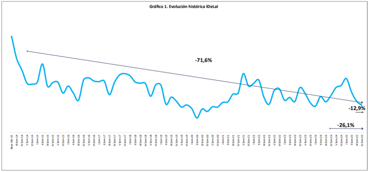 El Índice de Demanda Laboral Industrial (IDeLaI) de Bahía Blanca, un indicador que mide las solicitudes de empleo en la industria, alcanzó los 28,4 puntos en el cuarto bimestre de 2025. Este resultado implica una disminución del 12,9% respecto al bimestre anterior, y una caída del 26,1% en la comparación interanual, revirtiendo la tendencia de crecimiento que se había mantenido durante cinco bimestres. El valor registrado es el segundo más bajo desde la salida de la pandemia.