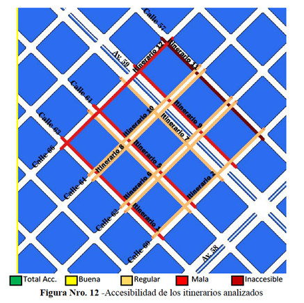 El trabajo no se quedó en la descripción: diseñó y aplicó una metodología propia, basada en referencias internacionales y adaptada a la realidad argentina. Dividió el microcentro de Necochea en 12 itinerarios, y cada uno en seis tramos. En cada tramo evaluó tres ámbitos: veredas, escaleras/rampas y estacionamientos. Usó planillas de campo, criterios normativos (Ley 24.314) y mapas georreferenciados. El resultado fue un diagnóstico detallado, con más de 70 tramos relevados uno por uno.