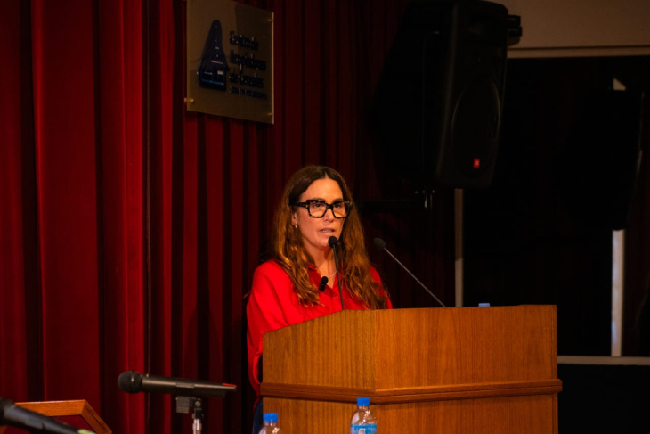 Junto a referentes como el rector de la UNICEN, Marcelo Aba, y el titular del Centro de Acopiadores, Juan Bautista Iriberri, la funcionaria instó a la comunidad a fortalecer las alianzas con el hinterland y las cadenas logísticas regionales.