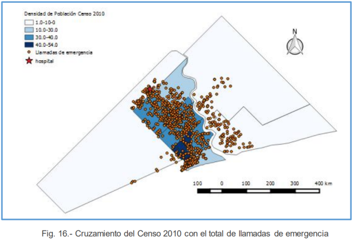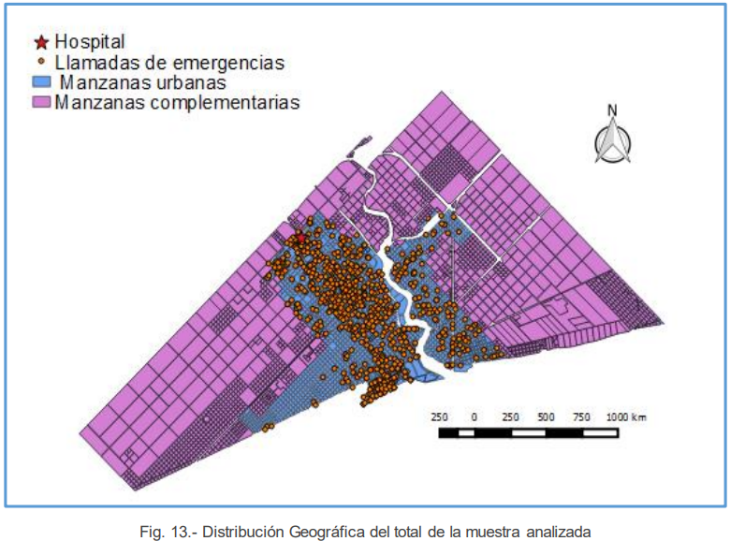 Para llevar adelante su análisis, recopiló y georreferenció más de 800 llamadas al servicio de emergencias del Hospital Municipal Emilio Ferreyra, correspondientes a distintos meses entre 2014 y 2015. Con esos datos, elaboró mapas de calor, evaluó distancias recorridas por las ambulancias y cruzó la información con variables demográficas del censo. Todo eso, con el soporte de herramientas como QGIS.