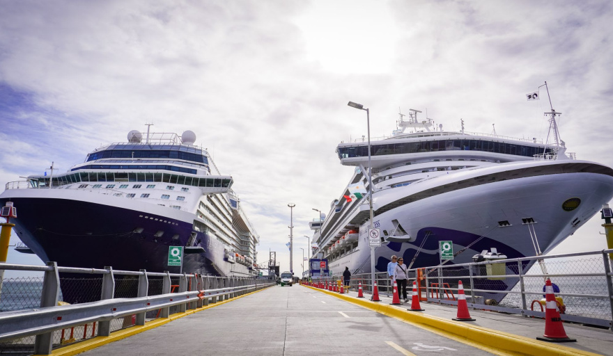 Cruceros Sapphire Princess y Celebrity Equinox, que tomaron amarras en el Muelle Comandante Luis Piedra Buena. Foto: Administración Portuaria de Puerto Madryn