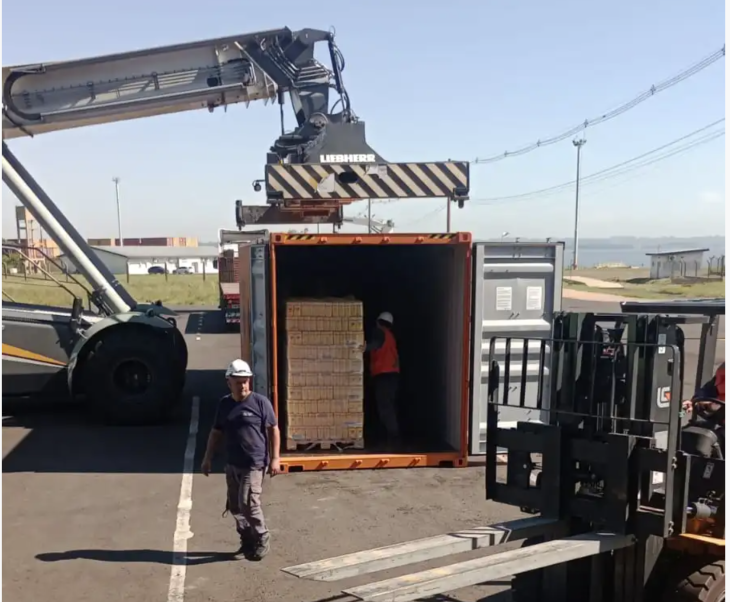 Puerto de Posadas ilustra el proceso de carga de un contenedor con yerba mate con destino a Europa