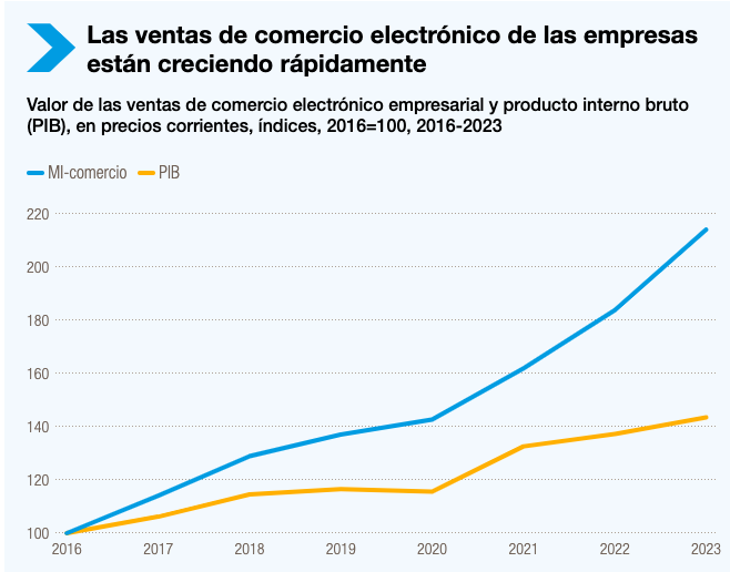 Según el informe, las ventas de comercio electrónico y de servicios digitalmente entregados figuran entre los segmentos de más rápido crecimiento de la economía mundial, con aumentos que superan el crecimiento del producto interno bruto en muchos países. A pesar de ello, la mayoría de los países aún carecen de estadísticas oficiales que documenten con precisión el valor de las transacciones en línea, el comercio digital transfronterizo y las ventas basadas en redes sociales.
