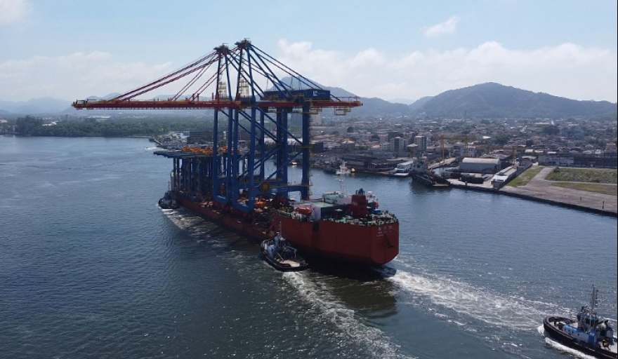 Santos Brasil, la empresa que gestiona Tecon Santos, recibió el sábado pasado (10) dos nuevos portainers (grúas de muelle) y ocho grúas eléctricas de patio (RTG) fabricados por la empresa china ZPMC, lo que representó una inversión de R$ 300 millones. Según el operador de la terminal, el equipo se trasladó desmontado a la cubierta del buque Zhen Hua 28, que zarpó de China el 15 de noviembre, y se descargó mediante los rieles que conectan el buque con el muelle.