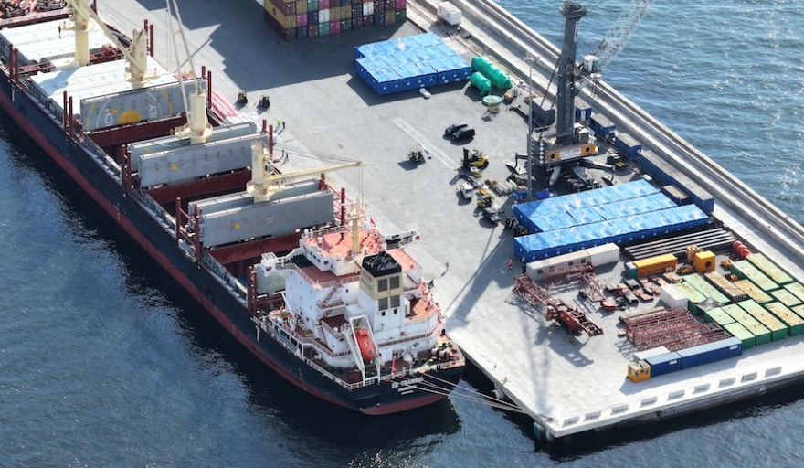 Durante la recalada, se transfirieron 64 baterías BESS con un peso total de 2.700 toneladas, equipos que están destinados al desarrollo del proyecto fotovoltaico Estepa, consolidando al puerto como un punto clave para la infraestructura energética regional.