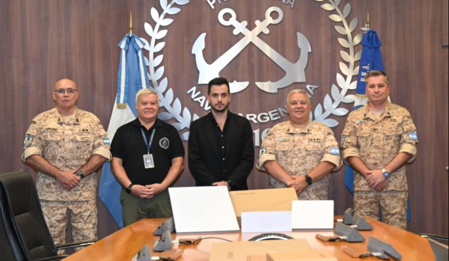 El Secretario de Seguridad Nacional, Martín Ferlauto, entregó a la Prefectura Naval Argentina antenas de internet satelital Starlink, en un acto realizado en la Dirección de Tráfico Marítimo del Edificio Guardacostas, sede central de la Fuerza.