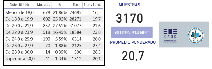 Los análisis realizados por las Cámaras Arbitrales de las Bolsas de Cereales de Buenos Aires y de Bahía Blanca reflejan que las partidas con niveles de gluten superiores al 26% –la base mínima de calidad para panificación– representan un 3,5% del total evaluando, lo que muestra la gravedad del problema.