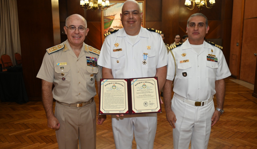 La Prefectura Naval Argentina otorgó la Distinción “Prefectura Naval Argentina” al Capitán de Fragata LT José Luis Portal Burgos, oficial de enlace de la Dirección de Capitanías y Guardacostas de la Marina de Guerra del Perú (DICAPI), en reconocimiento a su labor al finalizar su misión en la Autoridad Marítima nacional.
