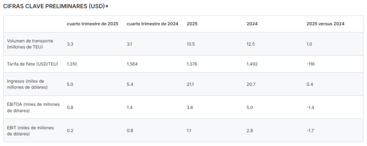 Transport volume: 13,5 millones de TEU, +8% respecto a 2024.