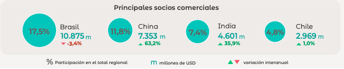 Entre los principales socios comerciales se destacan: