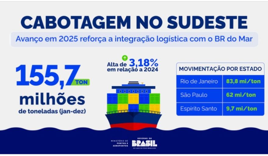 La región Sudeste de Brasil consolidó su posición como principal polo de cabotaje del país, concentrando el mayor volumen de transporte marítimo entre puertos nacionales durante 2025.