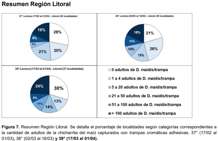 En el Litoral, el comportamiento fue variable según la zona, con registros de niveles altos en algunas localidades de Entre Ríos, donde se superaron los 800 y 1.000 individuos por trampa.