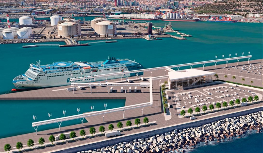 La instalación incluirá un edificio terminal de 5.600 m², destinado a servicios para pasajeros, oficinas y áreas operativas, junto con una explanada logística diseñada para la gestión de camiones, automóviles y semirremolques.