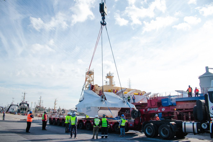 Este circuito logístico requiere tareas de acondicionamiento, manipulación y preparación en el área portuaria, con intervención de equipos técnicos especializados en cargas de gran porte.