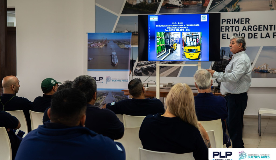 El Puerto La Plata llevó adelante una capacitación sobre Seguridad y Operaciones de Autoelevadores destinada a los trabajadores del Taller de Mantenimiento y de Locomotoras del puerto, en el marco de las acciones orientadas a formar especialistas calificados y reducir los riesgos laborales.